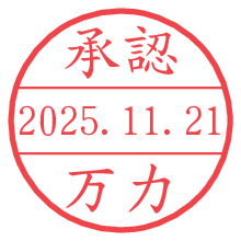 オプションの「電子透かし」をチェックし[生成]すると、見た目には分からないように、UNIXタイムスタンプを識別情報としてPNG形式の日付印に埋め込みます。 日付スタンプメーカーの使い方「部署」「名前」は最大8文字まで入力が可能です。「スタンプの色」を選択し、[生成]ボタン押下で印影画像が更新され、背景を透明に設定したPNG形式とPDF形式の印影画像がリンクからダウンロードできます。 オプションの「電子透かし」は、その性格上日付印ととても相性の良い付加サービスです。 別ページの「タイムスタンプと電子透かし」でも詳しく解説しますが、このオプションを追加することで、日付印が生成された日時に確かにその印が存在していることが証明されます。 ![]() 万力さんの電子印鑑が作れます。社内でのデータ書類閲覧確認用など、認印的な使い方のできる電子印鑑が作れます。 ![]() 古代文字で落款印が作れます。「落款スタンプメーカー」で作品を引き立たせる落款印が作れます。