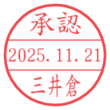 オプションの「電子透かし」をチェックし[生成]すると、見た目には分からないように、UNIXタイムスタンプを識別情報としてPNG形式の日付印に埋め込みます。 日付スタンプメーカーの使い方「部署」「名前」は最大8文字まで入力が可能です。「スタンプの色」を選択し、[生成]ボタン押下で印影画像が更新され、背景を透明に設定したPNG形式とPDF形式の印影画像がリンクからダウンロードできます。 オプションの「電子透かし」は、その性格上日付印ととても相性の良い付加サービスです。 別ページの「タイムスタンプと電子透かし」でも詳しく解説しますが、このオプションを追加することで、日付印が生成された日時に確かにその印が存在していることが証明されます。 ![]() 三井倉さんの電子印鑑が作れます。社内でのデータ書類閲覧確認用など、認印的な使い方のできる電子印鑑が作れます。 ![]() 古代文字で落款印が作れます。「落款スタンプメーカー」で作品を引き立たせる落款印が作れます。