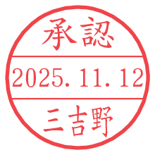 オプションの「電子透かし」をチェックし[生成]すると、見た目には分からないように、UNIXタイムスタンプを識別情報としてPNG形式の日付印に埋め込みます。 日付スタンプメーカーの使い方「部署」「名前」は最大8文字まで入力が可能です。「スタンプの色」を選択し、[生成]ボタン押下で印影画像が更新され、背景を透明に設定したPNG形式とPDF形式の印影画像がリンクからダウンロードできます。 オプションの「電子透かし」は、その性格上日付印ととても相性の良い付加サービスです。 別ページの「タイムスタンプと電子透かし」でも詳しく解説しますが、このオプションを追加することで、日付印が生成された日時に確かにその印が存在していることが証明されます。 ![]() 三吉野さんの電子印鑑が作れます。社内でのデータ書類閲覧確認用など、認印的な使い方のできる電子印鑑が作れます。 ![]() 古代文字で落款印が作れます。「落款スタンプメーカー」で作品を引き立たせる落款印が作れます。