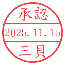 オプションの「電子透かし」をチェックし[生成]すると、見た目には分からないように、UNIXタイムスタンプを識別情報としてPNG形式の日付印に埋め込みます。 日付スタンプメーカーの使い方「部署」「名前」は最大8文字まで入力が可能です。「スタンプの色」を選択し、[生成]ボタン押下で印影画像が更新され、背景を透明に設定したPNG形式とPDF形式の印影画像がリンクからダウンロードできます。 オプションの「電子透かし」は、その性格上日付印ととても相性の良い付加サービスです。 別ページの「タイムスタンプと電子透かし」でも詳しく解説しますが、このオプションを追加することで、日付印が生成された日時に確かにその印が存在していることが証明されます。 ![]() 三貝さんの電子印鑑が作れます。社内でのデータ書類閲覧確認用など、認印的な使い方のできる電子印鑑が作れます。 ![]() 古代文字で落款印が作れます。「落款スタンプメーカー」で作品を引き立たせる落款印が作れます。