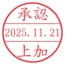 オプションの「電子透かし」をチェックし[生成]すると、見た目には分からないように、UNIXタイムスタンプを識別情報としてPNG形式の日付印に埋め込みます。 日付スタンプメーカーの使い方「部署」「名前」は最大8文字まで入力が可能です。「スタンプの色」を選択し、[生成]ボタン押下で印影画像が更新され、背景を透明に設定したPNG形式とPDF形式の印影画像がリンクからダウンロードできます。 オプションの「電子透かし」は、その性格上日付印ととても相性の良い付加サービスです。 別ページの「タイムスタンプと電子透かし」でも詳しく解説しますが、このオプションを追加することで、日付印が生成された日時に確かにその印が存在していることが証明されます。 ![]() 上加さんの電子印鑑が作れます。社内でのデータ書類閲覧確認用など、認印的な使い方のできる電子印鑑が作れます。 ![]() 古代文字で落款印が作れます。「落款スタンプメーカー」で作品を引き立たせる落款印が作れます。