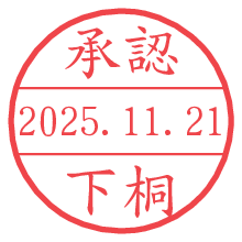 オプションの「電子透かし」をチェックし[生成]すると、見た目には分からないように、UNIXタイムスタンプを識別情報としてPNG形式の日付印に埋め込みます。 日付スタンプメーカーの使い方「部署」「名前」は最大8文字まで入力が可能です。「スタンプの色」を選択し、[生成]ボタン押下で印影画像が更新され、背景を透明に設定したPNG形式とPDF形式の印影画像がリンクからダウンロードできます。 オプションの「電子透かし」は、その性格上日付印ととても相性の良い付加サービスです。 別ページの「タイムスタンプと電子透かし」でも詳しく解説しますが、このオプションを追加することで、日付印が生成された日時に確かにその印が存在していることが証明されます。 ![]() 下桐さんの電子印鑑が作れます。社内でのデータ書類閲覧確認用など、認印的な使い方のできる電子印鑑が作れます。 ![]() 古代文字で落款印が作れます。「落款スタンプメーカー」で作品を引き立たせる落款印が作れます。