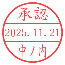 オプションの「電子透かし」をチェックし[生成]すると、見た目には分からないように、UNIXタイムスタンプを識別情報としてPNG形式の日付印に埋め込みます。 日付スタンプメーカーの使い方「部署」「名前」は最大8文字まで入力が可能です。「スタンプの色」を選択し、[生成]ボタン押下で印影画像が更新され、背景を透明に設定したPNG形式とPDF形式の印影画像がリンクからダウンロードできます。 オプションの「電子透かし」は、その性格上日付印ととても相性の良い付加サービスです。 別ページの「タイムスタンプと電子透かし」でも詳しく解説しますが、このオプションを追加することで、日付印が生成された日時に確かにその印が存在していることが証明されます。 ![]() 中ノ内さんの電子印鑑が作れます。社内でのデータ書類閲覧確認用など、認印的な使い方のできる電子印鑑が作れます。 ![]() 古代文字で落款印が作れます。「落款スタンプメーカー」で作品を引き立たせる落款印が作れます。