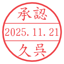 オプションの「電子透かし」をチェックし[生成]すると、見た目には分からないように、UNIXタイムスタンプを識別情報としてPNG形式の日付印に埋め込みます。 日付スタンプメーカーの使い方「部署」「名前」は最大8文字まで入力が可能です。「スタンプの色」を選択し、[生成]ボタン押下で印影画像が更新され、背景を透明に設定したPNG形式とPDF形式の印影画像がリンクからダウンロードできます。 オプションの「電子透かし」は、その性格上日付印ととても相性の良い付加サービスです。 別ページの「タイムスタンプと電子透かし」でも詳しく解説しますが、このオプションを追加することで、日付印が生成された日時に確かにその印が存在していることが証明されます。 ![]() 久呉さんの電子印鑑が作れます。社内でのデータ書類閲覧確認用など、認印的な使い方のできる電子印鑑が作れます。 ![]() 古代文字で落款印が作れます。「落款スタンプメーカー」で作品を引き立たせる落款印が作れます。