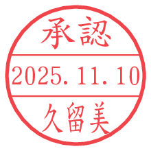 オプションの「電子透かし」をチェックし[生成]すると、見た目には分からないように、UNIXタイムスタンプを識別情報としてPNG形式の日付印に埋め込みます。 日付スタンプメーカーの使い方「部署」「名前」は最大8文字まで入力が可能です。「スタンプの色」を選択し、[生成]ボタン押下で印影画像が更新され、背景を透明に設定したPNG形式とPDF形式の印影画像がリンクからダウンロードできます。 オプションの「電子透かし」は、その性格上日付印ととても相性の良い付加サービスです。 別ページの「タイムスタンプと電子透かし」でも詳しく解説しますが、このオプションを追加することで、日付印が生成された日時に確かにその印が存在していることが証明されます。 ![]() 久留美さんの電子印鑑が作れます。社内でのデータ書類閲覧確認用など、認印的な使い方のできる電子印鑑が作れます。 ![]() 古代文字で落款印が作れます。「落款スタンプメーカー」で作品を引き立たせる落款印が作れます。