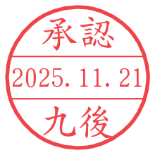 オプションの「電子透かし」をチェックし[生成]すると、見た目には分からないように、UNIXタイムスタンプを識別情報としてPNG形式の日付印に埋め込みます。 日付スタンプメーカーの使い方「部署」「名前」は最大8文字まで入力が可能です。「スタンプの色」を選択し、[生成]ボタン押下で印影画像が更新され、背景を透明に設定したPNG形式とPDF形式の印影画像がリンクからダウンロードできます。 オプションの「電子透かし」は、その性格上日付印ととても相性の良い付加サービスです。 別ページの「タイムスタンプと電子透かし」でも詳しく解説しますが、このオプションを追加することで、日付印が生成された日時に確かにその印が存在していることが証明されます。 ![]() 九後さんの電子印鑑が作れます。社内でのデータ書類閲覧確認用など、認印的な使い方のできる電子印鑑が作れます。 ![]() 古代文字で落款印が作れます。「落款スタンプメーカー」で作品を引き立たせる落款印が作れます。