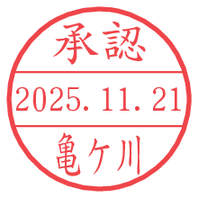 オプションの「電子透かし」をチェックし[生成]すると、見た目には分からないように、UNIXタイムスタンプを識別情報としてPNG形式の日付印に埋め込みます。 日付スタンプメーカーの使い方「部署」「名前」は最大8文字まで入力が可能です。「スタンプの色」を選択し、[生成]ボタン押下で印影画像が更新され、背景を透明に設定したPNG形式とPDF形式の印影画像がリンクからダウンロードできます。 オプションの「電子透かし」は、その性格上日付印ととても相性の良い付加サービスです。 別ページの「タイムスタンプと電子透かし」でも詳しく解説しますが、このオプションを追加することで、日付印が生成された日時に確かにその印が存在していることが証明されます。 ![]() 亀ケ川さんの電子印鑑が作れます。社内でのデータ書類閲覧確認用など、認印的な使い方のできる電子印鑑が作れます。 ![]() 古代文字で落款印が作れます。「落款スタンプメーカー」で作品を引き立たせる落款印が作れます。