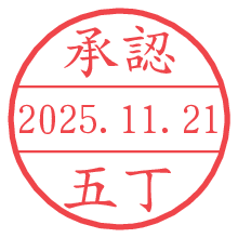 オプションの「電子透かし」をチェックし[生成]すると、見た目には分からないように、UNIXタイムスタンプを識別情報としてPNG形式の日付印に埋め込みます。 日付スタンプメーカーの使い方「部署」「名前」は最大8文字まで入力が可能です。「スタンプの色」を選択し、[生成]ボタン押下で印影画像が更新され、背景を透明に設定したPNG形式とPDF形式の印影画像がリンクからダウンロードできます。 オプションの「電子透かし」は、その性格上日付印ととても相性の良い付加サービスです。 別ページの「タイムスタンプと電子透かし」でも詳しく解説しますが、このオプションを追加することで、日付印が生成された日時に確かにその印が存在していることが証明されます。 ![]() 五丁さんの電子印鑑が作れます。社内でのデータ書類閲覧確認用など、認印的な使い方のできる電子印鑑が作れます。 ![]() 古代文字で落款印が作れます。「落款スタンプメーカー」で作品を引き立たせる落款印が作れます。