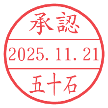 オプションの「電子透かし」をチェックし[生成]すると、見た目には分からないように、UNIXタイムスタンプを識別情報としてPNG形式の日付印に埋め込みます。 日付スタンプメーカーの使い方「部署」「名前」は最大8文字まで入力が可能です。「スタンプの色」を選択し、[生成]ボタン押下で印影画像が更新され、背景を透明に設定したPNG形式とPDF形式の印影画像がリンクからダウンロードできます。 オプションの「電子透かし」は、その性格上日付印ととても相性の良い付加サービスです。 別ページの「タイムスタンプと電子透かし」でも詳しく解説しますが、このオプションを追加することで、日付印が生成された日時に確かにその印が存在していることが証明されます。 ![]() 五十石さんの電子印鑑が作れます。社内でのデータ書類閲覧確認用など、認印的な使い方のできる電子印鑑が作れます。 ![]() 古代文字で落款印が作れます。「落款スタンプメーカー」で作品を引き立たせる落款印が作れます。