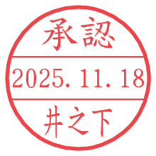 オプションの「電子透かし」をチェックし[生成]すると、見た目には分からないように、UNIXタイムスタンプを識別情報としてPNG形式の日付印に埋め込みます。 日付スタンプメーカーの使い方「部署」「名前」は最大8文字まで入力が可能です。「スタンプの色」を選択し、[生成]ボタン押下で印影画像が更新され、背景を透明に設定したPNG形式とPDF形式の印影画像がリンクからダウンロードできます。 オプションの「電子透かし」は、その性格上日付印ととても相性の良い付加サービスです。 別ページの「タイムスタンプと電子透かし」でも詳しく解説しますが、このオプションを追加することで、日付印が生成された日時に確かにその印が存在していることが証明されます。 ![]() 井之下さんの電子印鑑が作れます。社内でのデータ書類閲覧確認用など、認印的な使い方のできる電子印鑑が作れます。 ![]() 古代文字で落款印が作れます。「落款スタンプメーカー」で作品を引き立たせる落款印が作れます。