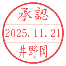 オプションの「電子透かし」をチェックし[生成]すると、見た目には分からないように、UNIXタイムスタンプを識別情報としてPNG形式の日付印に埋め込みます。 日付スタンプメーカーの使い方「部署」「名前」は最大8文字まで入力が可能です。「スタンプの色」を選択し、[生成]ボタン押下で印影画像が更新され、背景を透明に設定したPNG形式とPDF形式の印影画像がリンクからダウンロードできます。 オプションの「電子透かし」は、その性格上日付印ととても相性の良い付加サービスです。 別ページの「タイムスタンプと電子透かし」でも詳しく解説しますが、このオプションを追加することで、日付印が生成された日時に確かにその印が存在していることが証明されます。 ![]() 井野岡さんの電子印鑑が作れます。社内でのデータ書類閲覧確認用など、認印的な使い方のできる電子印鑑が作れます。 ![]() 古代文字で落款印が作れます。「落款スタンプメーカー」で作品を引き立たせる落款印が作れます。