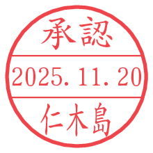 オプションの「電子透かし」をチェックし[生成]すると、見た目には分からないように、UNIXタイムスタンプを識別情報としてPNG形式の日付印に埋め込みます。 日付スタンプメーカーの使い方「部署」「名前」は最大8文字まで入力が可能です。「スタンプの色」を選択し、[生成]ボタン押下で印影画像が更新され、背景を透明に設定したPNG形式とPDF形式の印影画像がリンクからダウンロードできます。 オプションの「電子透かし」は、その性格上日付印ととても相性の良い付加サービスです。 別ページの「タイムスタンプと電子透かし」でも詳しく解説しますが、このオプションを追加することで、日付印が生成された日時に確かにその印が存在していることが証明されます。 ![]() 仁木島さんの電子印鑑が作れます。社内でのデータ書類閲覧確認用など、認印的な使い方のできる電子印鑑が作れます。 ![]() 古代文字で落款印が作れます。「落款スタンプメーカー」で作品を引き立たせる落款印が作れます。