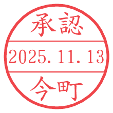オプションの「電子透かし」をチェックし[生成]すると、見た目には分からないように、UNIXタイムスタンプを識別情報としてPNG形式の日付印に埋め込みます。 日付スタンプメーカーの使い方「部署」「名前」は最大8文字まで入力が可能です。「スタンプの色」を選択し、[生成]ボタン押下で印影画像が更新され、背景を透明に設定したPNG形式とPDF形式の印影画像がリンクからダウンロードできます。 オプションの「電子透かし」は、その性格上日付印ととても相性の良い付加サービスです。 別ページの「タイムスタンプと電子透かし」でも詳しく解説しますが、このオプションを追加することで、日付印が生成された日時に確かにその印が存在していることが証明されます。 ![]() 今町さんの電子印鑑が作れます。社内でのデータ書類閲覧確認用など、認印的な使い方のできる電子印鑑が作れます。 ![]() 古代文字で落款印が作れます。「落款スタンプメーカー」で作品を引き立たせる落款印が作れます。