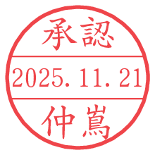 オプションの「電子透かし」をチェックし[生成]すると、見た目には分からないように、UNIXタイムスタンプを識別情報としてPNG形式の日付印に埋め込みます。 日付スタンプメーカーの使い方「部署」「名前」は最大8文字まで入力が可能です。「スタンプの色」を選択し、[生成]ボタン押下で印影画像が更新され、背景を透明に設定したPNG形式とPDF形式の印影画像がリンクからダウンロードできます。 オプションの「電子透かし」は、その性格上日付印ととても相性の良い付加サービスです。 別ページの「タイムスタンプと電子透かし」でも詳しく解説しますが、このオプションを追加することで、日付印が生成された日時に確かにその印が存在していることが証明されます。 ![]() 仲嶌さんの電子印鑑が作れます。社内でのデータ書類閲覧確認用など、認印的な使い方のできる電子印鑑が作れます。 ![]() 古代文字で落款印が作れます。「落款スタンプメーカー」で作品を引き立たせる落款印が作れます。