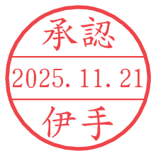 オプションの「電子透かし」をチェックし[生成]すると、見た目には分からないように、UNIXタイムスタンプを識別情報としてPNG形式の日付印に埋め込みます。 日付スタンプメーカーの使い方「部署」「名前」は最大8文字まで入力が可能です。「スタンプの色」を選択し、[生成]ボタン押下で印影画像が更新され、背景を透明に設定したPNG形式とPDF形式の印影画像がリンクからダウンロードできます。 オプションの「電子透かし」は、その性格上日付印ととても相性の良い付加サービスです。 別ページの「タイムスタンプと電子透かし」でも詳しく解説しますが、このオプションを追加することで、日付印が生成された日時に確かにその印が存在していることが証明されます。 ![]() 伊手さんの電子印鑑が作れます。社内でのデータ書類閲覧確認用など、認印的な使い方のできる電子印鑑が作れます。 ![]() 古代文字で落款印が作れます。「落款スタンプメーカー」で作品を引き立たせる落款印が作れます。