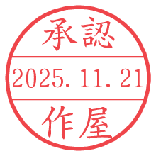 オプションの「電子透かし」をチェックし[生成]すると、見た目には分からないように、UNIXタイムスタンプを識別情報としてPNG形式の日付印に埋め込みます。 日付スタンプメーカーの使い方「部署」「名前」は最大8文字まで入力が可能です。「スタンプの色」を選択し、[生成]ボタン押下で印影画像が更新され、背景を透明に設定したPNG形式とPDF形式の印影画像がリンクからダウンロードできます。 オプションの「電子透かし」は、その性格上日付印ととても相性の良い付加サービスです。 別ページの「タイムスタンプと電子透かし」でも詳しく解説しますが、このオプションを追加することで、日付印が生成された日時に確かにその印が存在していることが証明されます。 ![]() 作屋さんの電子印鑑が作れます。社内でのデータ書類閲覧確認用など、認印的な使い方のできる電子印鑑が作れます。 ![]() 古代文字で落款印が作れます。「落款スタンプメーカー」で作品を引き立たせる落款印が作れます。