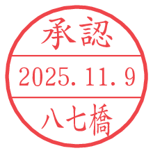 オプションの「電子透かし」をチェックし[生成]すると、見た目には分からないように、UNIXタイムスタンプを識別情報としてPNG形式の日付印に埋め込みます。 日付スタンプメーカーの使い方「部署」「名前」は最大8文字まで入力が可能です。「スタンプの色」を選択し、[生成]ボタン押下で印影画像が更新され、背景を透明に設定したPNG形式とPDF形式の印影画像がリンクからダウンロードできます。 オプションの「電子透かし」は、その性格上日付印ととても相性の良い付加サービスです。 別ページの「タイムスタンプと電子透かし」でも詳しく解説しますが、このオプションを追加することで、日付印が生成された日時に確かにその印が存在していることが証明されます。 ![]() 八七橋さんの電子印鑑が作れます。社内でのデータ書類閲覧確認用など、認印的な使い方のできる電子印鑑が作れます。 ![]() 古代文字で落款印が作れます。「落款スタンプメーカー」で作品を引き立たせる落款印が作れます。