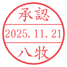 オプションの「電子透かし」をチェックし[生成]すると、見た目には分からないように、UNIXタイムスタンプを識別情報としてPNG形式の日付印に埋め込みます。 日付スタンプメーカーの使い方「部署」「名前」は最大8文字まで入力が可能です。「スタンプの色」を選択し、[生成]ボタン押下で印影画像が更新され、背景を透明に設定したPNG形式とPDF形式の印影画像がリンクからダウンロードできます。 オプションの「電子透かし」は、その性格上日付印ととても相性の良い付加サービスです。 別ページの「タイムスタンプと電子透かし」でも詳しく解説しますが、このオプションを追加することで、日付印が生成された日時に確かにその印が存在していることが証明されます。 ![]() 八牧さんの電子印鑑が作れます。社内でのデータ書類閲覧確認用など、認印的な使い方のできる電子印鑑が作れます。 ![]() 古代文字で落款印が作れます。「落款スタンプメーカー」で作品を引き立たせる落款印が作れます。