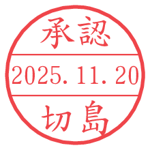 オプションの「電子透かし」をチェックし[生成]すると、見た目には分からないように、UNIXタイムスタンプを識別情報としてPNG形式の日付印に埋め込みます。 日付スタンプメーカーの使い方「部署」「名前」は最大8文字まで入力が可能です。「スタンプの色」を選択し、[生成]ボタン押下で印影画像が更新され、背景を透明に設定したPNG形式とPDF形式の印影画像がリンクからダウンロードできます。 オプションの「電子透かし」は、その性格上日付印ととても相性の良い付加サービスです。 別ページの「タイムスタンプと電子透かし」でも詳しく解説しますが、このオプションを追加することで、日付印が生成された日時に確かにその印が存在していることが証明されます。 ![]() 切島さんの電子印鑑が作れます。社内でのデータ書類閲覧確認用など、認印的な使い方のできる電子印鑑が作れます。 ![]() 古代文字で落款印が作れます。「落款スタンプメーカー」で作品を引き立たせる落款印が作れます。