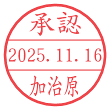 オプションの「電子透かし」をチェックし[生成]すると、見た目には分からないように、UNIXタイムスタンプを識別情報としてPNG形式の日付印に埋め込みます。 日付スタンプメーカーの使い方「部署」「名前」は最大8文字まで入力が可能です。「スタンプの色」を選択し、[生成]ボタン押下で印影画像が更新され、背景を透明に設定したPNG形式とPDF形式の印影画像がリンクからダウンロードできます。 オプションの「電子透かし」は、その性格上日付印ととても相性の良い付加サービスです。 別ページの「タイムスタンプと電子透かし」でも詳しく解説しますが、このオプションを追加することで、日付印が生成された日時に確かにその印が存在していることが証明されます。 ![]() 加治原さんの電子印鑑が作れます。社内でのデータ書類閲覧確認用など、認印的な使い方のできる電子印鑑が作れます。 ![]() 古代文字で落款印が作れます。「落款スタンプメーカー」で作品を引き立たせる落款印が作れます。