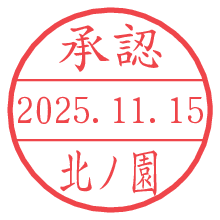 オプションの「電子透かし」をチェックし[生成]すると、見た目には分からないように、UNIXタイムスタンプを識別情報としてPNG形式の日付印に埋め込みます。 日付スタンプメーカーの使い方「部署」「名前」は最大8文字まで入力が可能です。「スタンプの色」を選択し、[生成]ボタン押下で印影画像が更新され、背景を透明に設定したPNG形式とPDF形式の印影画像がリンクからダウンロードできます。 オプションの「電子透かし」は、その性格上日付印ととても相性の良い付加サービスです。 別ページの「タイムスタンプと電子透かし」でも詳しく解説しますが、このオプションを追加することで、日付印が生成された日時に確かにその印が存在していることが証明されます。 ![]() 北ノ園さんの電子印鑑が作れます。社内でのデータ書類閲覧確認用など、認印的な使い方のできる電子印鑑が作れます。 ![]() 古代文字で落款印が作れます。「落款スタンプメーカー」で作品を引き立たせる落款印が作れます。