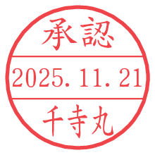 オプションの「電子透かし」をチェックし[生成]すると、見た目には分からないように、UNIXタイムスタンプを識別情報としてPNG形式の日付印に埋め込みます。 日付スタンプメーカーの使い方「部署」「名前」は最大8文字まで入力が可能です。「スタンプの色」を選択し、[生成]ボタン押下で印影画像が更新され、背景を透明に設定したPNG形式とPDF形式の印影画像がリンクからダウンロードできます。 オプションの「電子透かし」は、その性格上日付印ととても相性の良い付加サービスです。 別ページの「タイムスタンプと電子透かし」でも詳しく解説しますが、このオプションを追加することで、日付印が生成された日時に確かにその印が存在していることが証明されます。 ![]() 千寺丸さんの電子印鑑が作れます。社内でのデータ書類閲覧確認用など、認印的な使い方のできる電子印鑑が作れます。 ![]() 古代文字で落款印が作れます。「落款スタンプメーカー」で作品を引き立たせる落款印が作れます。