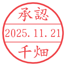 オプションの「電子透かし」をチェックし[生成]すると、見た目には分からないように、UNIXタイムスタンプを識別情報としてPNG形式の日付印に埋め込みます。 日付スタンプメーカーの使い方「部署」「名前」は最大8文字まで入力が可能です。「スタンプの色」を選択し、[生成]ボタン押下で印影画像が更新され、背景を透明に設定したPNG形式とPDF形式の印影画像がリンクからダウンロードできます。 オプションの「電子透かし」は、その性格上日付印ととても相性の良い付加サービスです。 別ページの「タイムスタンプと電子透かし」でも詳しく解説しますが、このオプションを追加することで、日付印が生成された日時に確かにその印が存在していることが証明されます。 ![]() 千畑さんの電子印鑑が作れます。社内でのデータ書類閲覧確認用など、認印的な使い方のできる電子印鑑が作れます。 ![]() 古代文字で落款印が作れます。「落款スタンプメーカー」で作品を引き立たせる落款印が作れます。