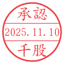 オプションの「電子透かし」をチェックし[生成]すると、見た目には分からないように、UNIXタイムスタンプを識別情報としてPNG形式の日付印に埋め込みます。 日付スタンプメーカーの使い方「部署」「名前」は最大8文字まで入力が可能です。「スタンプの色」を選択し、[生成]ボタン押下で印影画像が更新され、背景を透明に設定したPNG形式とPDF形式の印影画像がリンクからダウンロードできます。 オプションの「電子透かし」は、その性格上日付印ととても相性の良い付加サービスです。 別ページの「タイムスタンプと電子透かし」でも詳しく解説しますが、このオプションを追加することで、日付印が生成された日時に確かにその印が存在していることが証明されます。 ![]() 千股さんの電子印鑑が作れます。社内でのデータ書類閲覧確認用など、認印的な使い方のできる電子印鑑が作れます。 ![]() 古代文字で落款印が作れます。「落款スタンプメーカー」で作品を引き立たせる落款印が作れます。
