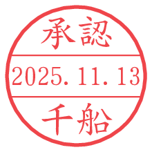 オプションの「電子透かし」をチェックし[生成]すると、見た目には分からないように、UNIXタイムスタンプを識別情報としてPNG形式の日付印に埋め込みます。 日付スタンプメーカーの使い方「部署」「名前」は最大8文字まで入力が可能です。「スタンプの色」を選択し、[生成]ボタン押下で印影画像が更新され、背景を透明に設定したPNG形式とPDF形式の印影画像がリンクからダウンロードできます。 オプションの「電子透かし」は、その性格上日付印ととても相性の良い付加サービスです。 別ページの「タイムスタンプと電子透かし」でも詳しく解説しますが、このオプションを追加することで、日付印が生成された日時に確かにその印が存在していることが証明されます。 ![]() 千船さんの電子印鑑が作れます。社内でのデータ書類閲覧確認用など、認印的な使い方のできる電子印鑑が作れます。 ![]() 古代文字で落款印が作れます。「落款スタンプメーカー」で作品を引き立たせる落款印が作れます。