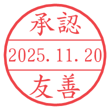 オプションの「電子透かし」をチェックし[生成]すると、見た目には分からないように、UNIXタイムスタンプを識別情報としてPNG形式の日付印に埋め込みます。 日付スタンプメーカーの使い方「部署」「名前」は最大8文字まで入力が可能です。「スタンプの色」を選択し、[生成]ボタン押下で印影画像が更新され、背景を透明に設定したPNG形式とPDF形式の印影画像がリンクからダウンロードできます。 オプションの「電子透かし」は、その性格上日付印ととても相性の良い付加サービスです。 別ページの「タイムスタンプと電子透かし」でも詳しく解説しますが、このオプションを追加することで、日付印が生成された日時に確かにその印が存在していることが証明されます。 ![]() 友善さんの電子印鑑が作れます。社内でのデータ書類閲覧確認用など、認印的な使い方のできる電子印鑑が作れます。 ![]() 古代文字で落款印が作れます。「落款スタンプメーカー」で作品を引き立たせる落款印が作れます。