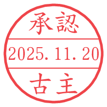 オプションの「電子透かし」をチェックし[生成]すると、見た目には分からないように、UNIXタイムスタンプを識別情報としてPNG形式の日付印に埋め込みます。 日付スタンプメーカーの使い方「部署」「名前」は最大8文字まで入力が可能です。「スタンプの色」を選択し、[生成]ボタン押下で印影画像が更新され、背景を透明に設定したPNG形式とPDF形式の印影画像がリンクからダウンロードできます。 オプションの「電子透かし」は、その性格上日付印ととても相性の良い付加サービスです。 別ページの「タイムスタンプと電子透かし」でも詳しく解説しますが、このオプションを追加することで、日付印が生成された日時に確かにその印が存在していることが証明されます。 ![]() 古主さんの電子印鑑が作れます。社内でのデータ書類閲覧確認用など、認印的な使い方のできる電子印鑑が作れます。 ![]() 古代文字で落款印が作れます。「落款スタンプメーカー」で作品を引き立たせる落款印が作れます。