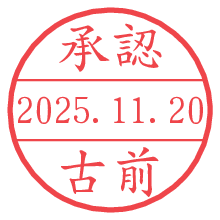 オプションの「電子透かし」をチェックし[生成]すると、見た目には分からないように、UNIXタイムスタンプを識別情報としてPNG形式の日付印に埋め込みます。 日付スタンプメーカーの使い方「部署」「名前」は最大8文字まで入力が可能です。「スタンプの色」を選択し、[生成]ボタン押下で印影画像が更新され、背景を透明に設定したPNG形式とPDF形式の印影画像がリンクからダウンロードできます。 オプションの「電子透かし」は、その性格上日付印ととても相性の良い付加サービスです。 別ページの「タイムスタンプと電子透かし」でも詳しく解説しますが、このオプションを追加することで、日付印が生成された日時に確かにその印が存在していることが証明されます。 ![]() 古前さんの電子印鑑が作れます。社内でのデータ書類閲覧確認用など、認印的な使い方のできる電子印鑑が作れます。 ![]() 古代文字で落款印が作れます。「落款スタンプメーカー」で作品を引き立たせる落款印が作れます。