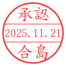 オプションの「電子透かし」をチェックし[生成]すると、見た目には分からないように、UNIXタイムスタンプを識別情報としてPNG形式の日付印に埋め込みます。 日付スタンプメーカーの使い方「部署」「名前」は最大8文字まで入力が可能です。「スタンプの色」を選択し、[生成]ボタン押下で印影画像が更新され、背景を透明に設定したPNG形式とPDF形式の印影画像がリンクからダウンロードできます。 オプションの「電子透かし」は、その性格上日付印ととても相性の良い付加サービスです。 別ページの「タイムスタンプと電子透かし」でも詳しく解説しますが、このオプションを追加することで、日付印が生成された日時に確かにその印が存在していることが証明されます。 ![]() 合島さんの電子印鑑が作れます。社内でのデータ書類閲覧確認用など、認印的な使い方のできる電子印鑑が作れます。 ![]() 古代文字で落款印が作れます。「落款スタンプメーカー」で作品を引き立たせる落款印が作れます。