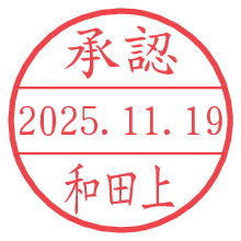 オプションの「電子透かし」をチェックし[生成]すると、見た目には分からないように、UNIXタイムスタンプを識別情報としてPNG形式の日付印に埋め込みます。 日付スタンプメーカーの使い方「部署」「名前」は最大8文字まで入力が可能です。「スタンプの色」を選択し、[生成]ボタン押下で印影画像が更新され、背景を透明に設定したPNG形式とPDF形式の印影画像がリンクからダウンロードできます。 オプションの「電子透かし」は、その性格上日付印ととても相性の良い付加サービスです。 別ページの「タイムスタンプと電子透かし」でも詳しく解説しますが、このオプションを追加することで、日付印が生成された日時に確かにその印が存在していることが証明されます。 ![]() 和田上さんの電子印鑑が作れます。社内でのデータ書類閲覧確認用など、認印的な使い方のできる電子印鑑が作れます。 ![]() 古代文字で落款印が作れます。「落款スタンプメーカー」で作品を引き立たせる落款印が作れます。