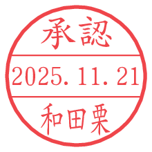 オプションの「電子透かし」をチェックし[生成]すると、見た目には分からないように、UNIXタイムスタンプを識別情報としてPNG形式の日付印に埋め込みます。 日付スタンプメーカーの使い方「部署」「名前」は最大8文字まで入力が可能です。「スタンプの色」を選択し、[生成]ボタン押下で印影画像が更新され、背景を透明に設定したPNG形式とPDF形式の印影画像がリンクからダウンロードできます。 オプションの「電子透かし」は、その性格上日付印ととても相性の良い付加サービスです。 別ページの「タイムスタンプと電子透かし」でも詳しく解説しますが、このオプションを追加することで、日付印が生成された日時に確かにその印が存在していることが証明されます。 ![]() 和田栗さんの電子印鑑が作れます。社内でのデータ書類閲覧確認用など、認印的な使い方のできる電子印鑑が作れます。 ![]() 古代文字で落款印が作れます。「落款スタンプメーカー」で作品を引き立たせる落款印が作れます。