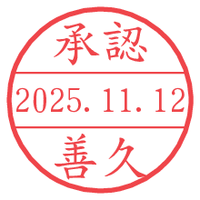 オプションの「電子透かし」をチェックし[生成]すると、見た目には分からないように、UNIXタイムスタンプを識別情報としてPNG形式の日付印に埋め込みます。 日付スタンプメーカーの使い方「部署」「名前」は最大8文字まで入力が可能です。「スタンプの色」を選択し、[生成]ボタン押下で印影画像が更新され、背景を透明に設定したPNG形式とPDF形式の印影画像がリンクからダウンロードできます。 オプションの「電子透かし」は、その性格上日付印ととても相性の良い付加サービスです。 別ページの「タイムスタンプと電子透かし」でも詳しく解説しますが、このオプションを追加することで、日付印が生成された日時に確かにその印が存在していることが証明されます。 ![]() 善久さんの電子印鑑が作れます。社内でのデータ書類閲覧確認用など、認印的な使い方のできる電子印鑑が作れます。 ![]() 古代文字で落款印が作れます。「落款スタンプメーカー」で作品を引き立たせる落款印が作れます。