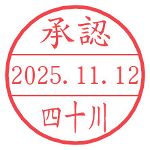 オプションの「電子透かし」をチェックし[生成]すると、見た目には分からないように、UNIXタイムスタンプを識別情報としてPNG形式の日付印に埋め込みます。 日付スタンプメーカーの使い方「部署」「名前」は最大8文字まで入力が可能です。「スタンプの色」を選択し、[生成]ボタン押下で印影画像が更新され、背景を透明に設定したPNG形式とPDF形式の印影画像がリンクからダウンロードできます。 オプションの「電子透かし」は、その性格上日付印ととても相性の良い付加サービスです。 別ページの「タイムスタンプと電子透かし」でも詳しく解説しますが、このオプションを追加することで、日付印が生成された日時に確かにその印が存在していることが証明されます。 ![]() 四十川さんの電子印鑑が作れます。社内でのデータ書類閲覧確認用など、認印的な使い方のできる電子印鑑が作れます。 ![]() 古代文字で落款印が作れます。「落款スタンプメーカー」で作品を引き立たせる落款印が作れます。