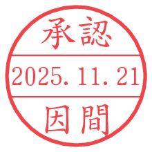 オプションの「電子透かし」をチェックし[生成]すると、見た目には分からないように、UNIXタイムスタンプを識別情報としてPNG形式の日付印に埋め込みます。 日付スタンプメーカーの使い方「部署」「名前」は最大8文字まで入力が可能です。「スタンプの色」を選択し、[生成]ボタン押下で印影画像が更新され、背景を透明に設定したPNG形式とPDF形式の印影画像がリンクからダウンロードできます。 オプションの「電子透かし」は、その性格上日付印ととても相性の良い付加サービスです。 別ページの「タイムスタンプと電子透かし」でも詳しく解説しますが、このオプションを追加することで、日付印が生成された日時に確かにその印が存在していることが証明されます。 ![]() 因間さんの電子印鑑が作れます。社内でのデータ書類閲覧確認用など、認印的な使い方のできる電子印鑑が作れます。 ![]() 古代文字で落款印が作れます。「落款スタンプメーカー」で作品を引き立たせる落款印が作れます。