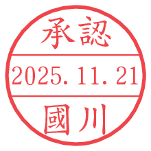 オプションの「電子透かし」をチェックし[生成]すると、見た目には分からないように、UNIXタイムスタンプを識別情報としてPNG形式の日付印に埋め込みます。 日付スタンプメーカーの使い方「部署」「名前」は最大8文字まで入力が可能です。「スタンプの色」を選択し、[生成]ボタン押下で印影画像が更新され、背景を透明に設定したPNG形式とPDF形式の印影画像がリンクからダウンロードできます。 オプションの「電子透かし」は、その性格上日付印ととても相性の良い付加サービスです。 別ページの「タイムスタンプと電子透かし」でも詳しく解説しますが、このオプションを追加することで、日付印が生成された日時に確かにその印が存在していることが証明されます。 ![]() 國川さんの電子印鑑が作れます。社内でのデータ書類閲覧確認用など、認印的な使い方のできる電子印鑑が作れます。 ![]() 古代文字で落款印が作れます。「落款スタンプメーカー」で作品を引き立たせる落款印が作れます。