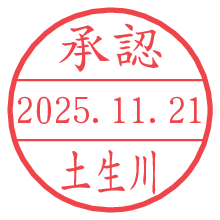 オプションの「電子透かし」をチェックし[生成]すると、見た目には分からないように、UNIXタイムスタンプを識別情報としてPNG形式の日付印に埋め込みます。 日付スタンプメーカーの使い方「部署」「名前」は最大8文字まで入力が可能です。「スタンプの色」を選択し、[生成]ボタン押下で印影画像が更新され、背景を透明に設定したPNG形式とPDF形式の印影画像がリンクからダウンロードできます。 オプションの「電子透かし」は、その性格上日付印ととても相性の良い付加サービスです。 別ページの「タイムスタンプと電子透かし」でも詳しく解説しますが、このオプションを追加することで、日付印が生成された日時に確かにその印が存在していることが証明されます。 ![]() 土生川さんの電子印鑑が作れます。社内でのデータ書類閲覧確認用など、認印的な使い方のできる電子印鑑が作れます。 ![]() 古代文字で落款印が作れます。「落款スタンプメーカー」で作品を引き立たせる落款印が作れます。