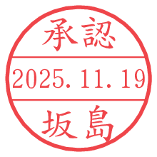 オプションの「電子透かし」をチェックし[生成]すると、見た目には分からないように、UNIXタイムスタンプを識別情報としてPNG形式の日付印に埋め込みます。 日付スタンプメーカーの使い方「部署」「名前」は最大8文字まで入力が可能です。「スタンプの色」を選択し、[生成]ボタン押下で印影画像が更新され、背景を透明に設定したPNG形式とPDF形式の印影画像がリンクからダウンロードできます。 オプションの「電子透かし」は、その性格上日付印ととても相性の良い付加サービスです。 別ページの「タイムスタンプと電子透かし」でも詳しく解説しますが、このオプションを追加することで、日付印が生成された日時に確かにその印が存在していることが証明されます。 ![]() 坂島さんの電子印鑑が作れます。社内でのデータ書類閲覧確認用など、認印的な使い方のできる電子印鑑が作れます。 ![]() 古代文字で落款印が作れます。「落款スタンプメーカー」で作品を引き立たせる落款印が作れます。