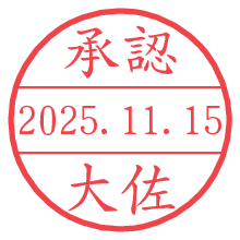オプションの「電子透かし」をチェックし[生成]すると、見た目には分からないように、UNIXタイムスタンプを識別情報としてPNG形式の日付印に埋め込みます。 日付スタンプメーカーの使い方「部署」「名前」は最大8文字まで入力が可能です。「スタンプの色」を選択し、[生成]ボタン押下で印影画像が更新され、背景を透明に設定したPNG形式とPDF形式の印影画像がリンクからダウンロードできます。 オプションの「電子透かし」は、その性格上日付印ととても相性の良い付加サービスです。 別ページの「タイムスタンプと電子透かし」でも詳しく解説しますが、このオプションを追加することで、日付印が生成された日時に確かにその印が存在していることが証明されます。 ![]() 大佐さんの電子印鑑が作れます。社内でのデータ書類閲覧確認用など、認印的な使い方のできる電子印鑑が作れます。 ![]() 古代文字で落款印が作れます。「落款スタンプメーカー」で作品を引き立たせる落款印が作れます。