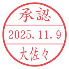 オプションの「電子透かし」をチェックし[生成]すると、見た目には分からないように、UNIXタイムスタンプを識別情報としてPNG形式の日付印に埋め込みます。 日付スタンプメーカーの使い方「部署」「名前」は最大8文字まで入力が可能です。「スタンプの色」を選択し、[生成]ボタン押下で印影画像が更新され、背景を透明に設定したPNG形式とPDF形式の印影画像がリンクからダウンロードできます。 オプションの「電子透かし」は、その性格上日付印ととても相性の良い付加サービスです。 別ページの「タイムスタンプと電子透かし」でも詳しく解説しますが、このオプションを追加することで、日付印が生成された日時に確かにその印が存在していることが証明されます。 ![]() 大佐々さんの電子印鑑が作れます。社内でのデータ書類閲覧確認用など、認印的な使い方のできる電子印鑑が作れます。 ![]() 古代文字で落款印が作れます。「落款スタンプメーカー」で作品を引き立たせる落款印が作れます。