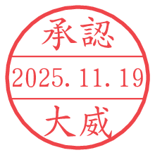 オプションの「電子透かし」をチェックし[生成]すると、見た目には分からないように、UNIXタイムスタンプを識別情報としてPNG形式の日付印に埋め込みます。 日付スタンプメーカーの使い方「部署」「名前」は最大8文字まで入力が可能です。「スタンプの色」を選択し、[生成]ボタン押下で印影画像が更新され、背景を透明に設定したPNG形式とPDF形式の印影画像がリンクからダウンロードできます。 オプションの「電子透かし」は、その性格上日付印ととても相性の良い付加サービスです。 別ページの「タイムスタンプと電子透かし」でも詳しく解説しますが、このオプションを追加することで、日付印が生成された日時に確かにその印が存在していることが証明されます。 ![]() 大威さんの電子印鑑が作れます。社内でのデータ書類閲覧確認用など、認印的な使い方のできる電子印鑑が作れます。 ![]() 古代文字で落款印が作れます。「落款スタンプメーカー」で作品を引き立たせる落款印が作れます。
