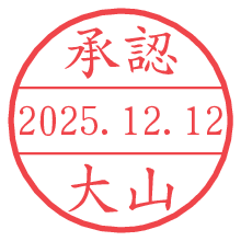 オプションの「電子透かし」をチェックし[生成]すると、見た目には分からないように、UNIXタイムスタンプを識別情報としてPNG形式の日付印に埋め込みます。 日付スタンプメーカーの使い方「部署」「名前」は最大8文字まで入力が可能です。「スタンプの色」を選択し、[生成]ボタン押下で印影画像が更新され、背景を透明に設定したPNG形式とPDF形式の印影画像がリンクからダウンロードできます。 オプションの「電子透かし」は、その性格上日付印ととても相性の良い付加サービスです。 別ページの「タイムスタンプと電子透かし」でも詳しく解説しますが、このオプションを追加することで、日付印が生成された日時に確かにその印が存在していることが証明されます。 ![]() 大山さんの電子印鑑が作れます。社内でのデータ書類閲覧確認用など、認印的な使い方のできる電子印鑑が作れます。 ![]() 古代文字で落款印が作れます。「落款スタンプメーカー」で作品を引き立たせる落款印が作れます。