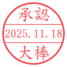 オプションの「電子透かし」をチェックし[生成]すると、見た目には分からないように、UNIXタイムスタンプを識別情報としてPNG形式の日付印に埋め込みます。 日付スタンプメーカーの使い方「部署」「名前」は最大8文字まで入力が可能です。「スタンプの色」を選択し、[生成]ボタン押下で印影画像が更新され、背景を透明に設定したPNG形式とPDF形式の印影画像がリンクからダウンロードできます。 オプションの「電子透かし」は、その性格上日付印ととても相性の良い付加サービスです。 別ページの「タイムスタンプと電子透かし」でも詳しく解説しますが、このオプションを追加することで、日付印が生成された日時に確かにその印が存在していることが証明されます。 ![]() 大棒さんの電子印鑑が作れます。社内でのデータ書類閲覧確認用など、認印的な使い方のできる電子印鑑が作れます。 ![]() 古代文字で落款印が作れます。「落款スタンプメーカー」で作品を引き立たせる落款印が作れます。