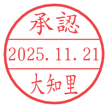 オプションの「電子透かし」をチェックし[生成]すると、見た目には分からないように、UNIXタイムスタンプを識別情報としてPNG形式の日付印に埋め込みます。 日付スタンプメーカーの使い方「部署」「名前」は最大8文字まで入力が可能です。「スタンプの色」を選択し、[生成]ボタン押下で印影画像が更新され、背景を透明に設定したPNG形式とPDF形式の印影画像がリンクからダウンロードできます。 オプションの「電子透かし」は、その性格上日付印ととても相性の良い付加サービスです。 別ページの「タイムスタンプと電子透かし」でも詳しく解説しますが、このオプションを追加することで、日付印が生成された日時に確かにその印が存在していることが証明されます。 ![]() 大知里さんの電子印鑑が作れます。社内でのデータ書類閲覧確認用など、認印的な使い方のできる電子印鑑が作れます。 ![]() 古代文字で落款印が作れます。「落款スタンプメーカー」で作品を引き立たせる落款印が作れます。