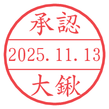 オプションの「電子透かし」をチェックし[生成]すると、見た目には分からないように、UNIXタイムスタンプを識別情報としてPNG形式の日付印に埋め込みます。 日付スタンプメーカーの使い方「部署」「名前」は最大8文字まで入力が可能です。「スタンプの色」を選択し、[生成]ボタン押下で印影画像が更新され、背景を透明に設定したPNG形式とPDF形式の印影画像がリンクからダウンロードできます。 オプションの「電子透かし」は、その性格上日付印ととても相性の良い付加サービスです。 別ページの「タイムスタンプと電子透かし」でも詳しく解説しますが、このオプションを追加することで、日付印が生成された日時に確かにその印が存在していることが証明されます。 ![]() 大鍬さんの電子印鑑が作れます。社内でのデータ書類閲覧確認用など、認印的な使い方のできる電子印鑑が作れます。 ![]() 古代文字で落款印が作れます。「落款スタンプメーカー」で作品を引き立たせる落款印が作れます。