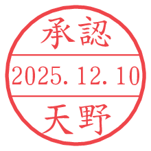 オプションの「電子透かし」をチェックし[生成]すると、見た目には分からないように、UNIXタイムスタンプを識別情報としてPNG形式の日付印に埋め込みます。 日付スタンプメーカーの使い方「部署」「名前」は最大8文字まで入力が可能です。「スタンプの色」を選択し、[生成]ボタン押下で印影画像が更新され、背景を透明に設定したPNG形式とPDF形式の印影画像がリンクからダウンロードできます。 オプションの「電子透かし」は、その性格上日付印ととても相性の良い付加サービスです。 別ページの「タイムスタンプと電子透かし」でも詳しく解説しますが、このオプションを追加することで、日付印が生成された日時に確かにその印が存在していることが証明されます。 ![]() 天野さんの電子印鑑が作れます。社内でのデータ書類閲覧確認用など、認印的な使い方のできる電子印鑑が作れます。 ![]() 古代文字で落款印が作れます。「落款スタンプメーカー」で作品を引き立たせる落款印が作れます。