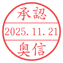 オプションの「電子透かし」をチェックし[生成]すると、見た目には分からないように、UNIXタイムスタンプを識別情報としてPNG形式の日付印に埋め込みます。 日付スタンプメーカーの使い方「部署」「名前」は最大8文字まで入力が可能です。「スタンプの色」を選択し、[生成]ボタン押下で印影画像が更新され、背景を透明に設定したPNG形式とPDF形式の印影画像がリンクからダウンロードできます。 オプションの「電子透かし」は、その性格上日付印ととても相性の良い付加サービスです。 別ページの「タイムスタンプと電子透かし」でも詳しく解説しますが、このオプションを追加することで、日付印が生成された日時に確かにその印が存在していることが証明されます。 ![]() 奥信さんの電子印鑑が作れます。社内でのデータ書類閲覧確認用など、認印的な使い方のできる電子印鑑が作れます。 ![]() 古代文字で落款印が作れます。「落款スタンプメーカー」で作品を引き立たせる落款印が作れます。